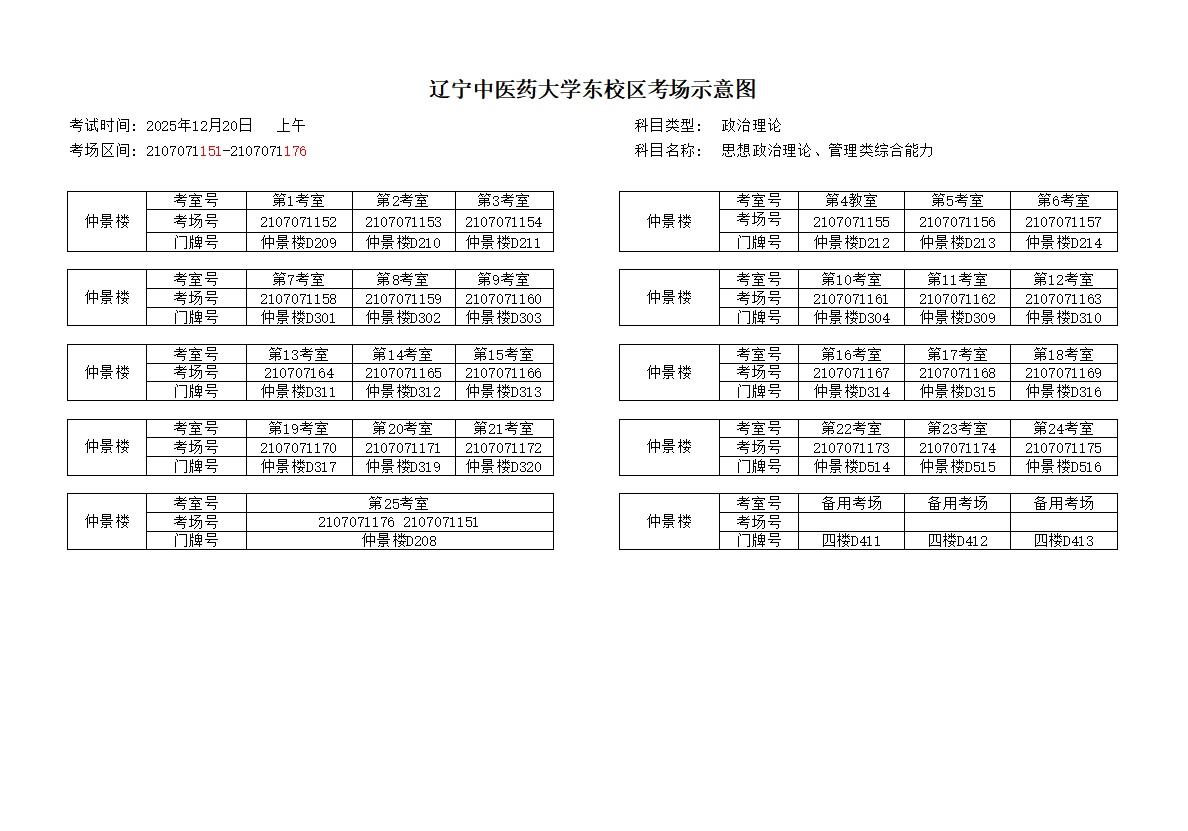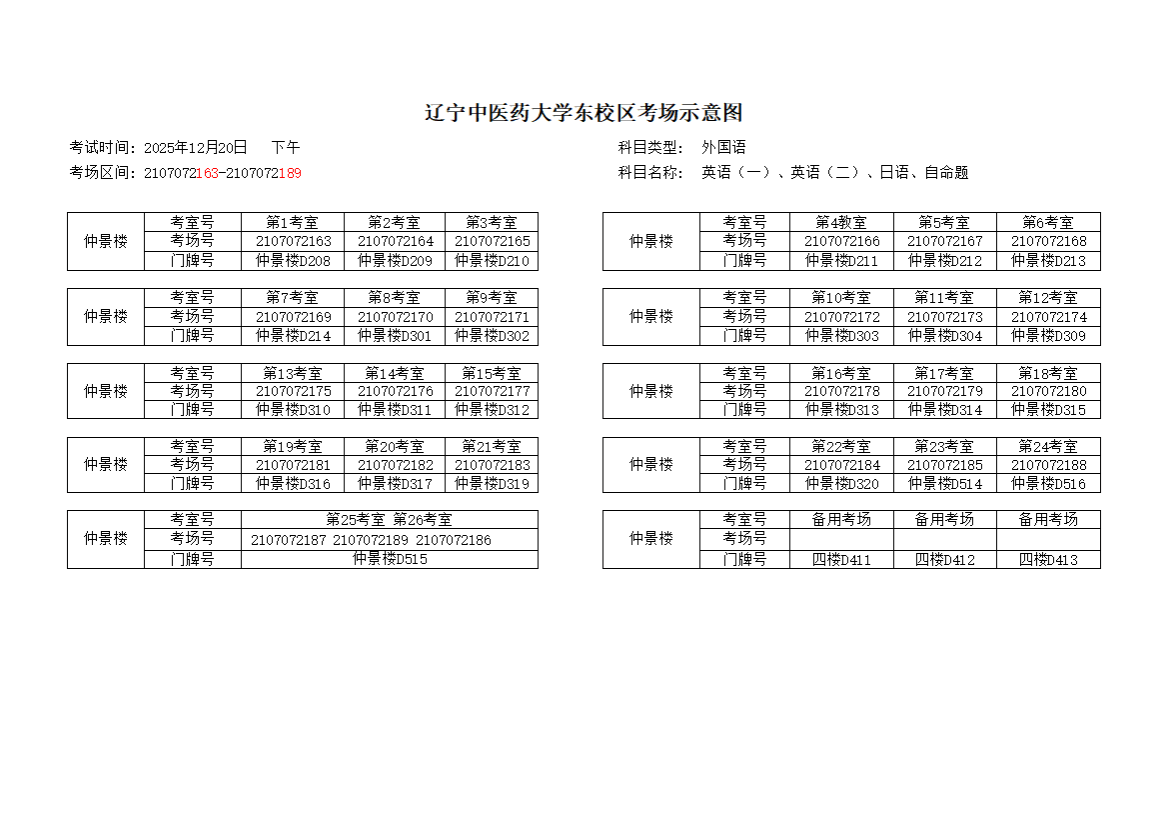 图2 12月20日上午考场分布图