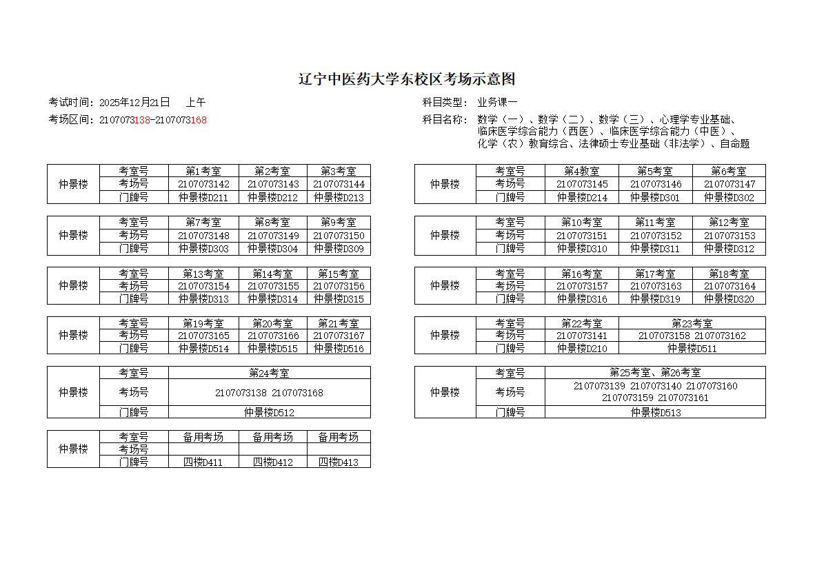 图4 12月21日上午考场分布图